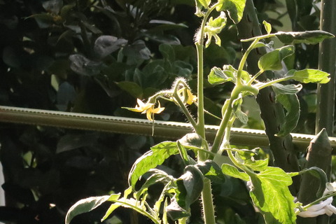 トマト灰を撒いた後花が咲きました&ゴーヤの葉虫に食われる
